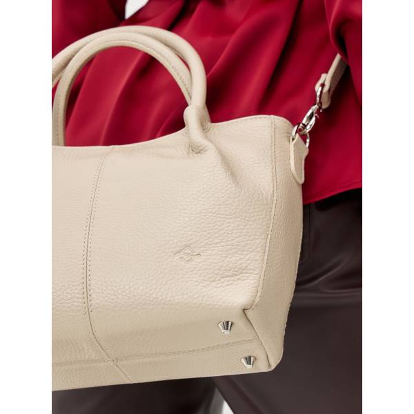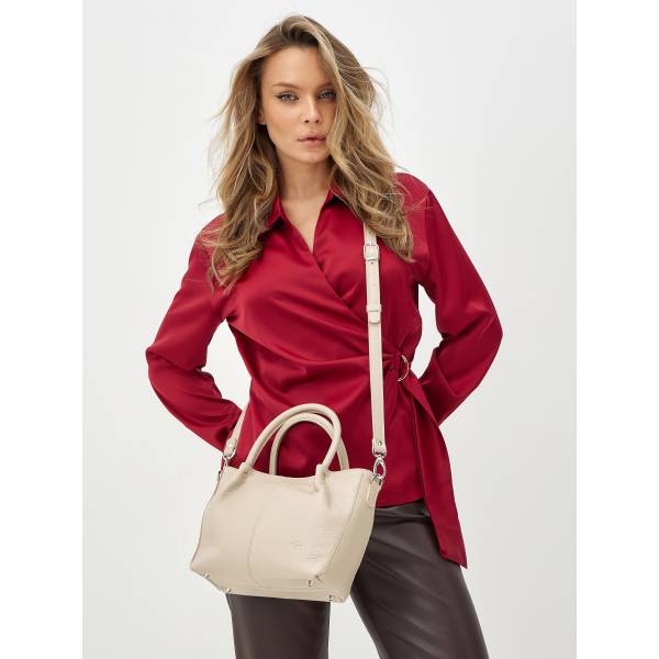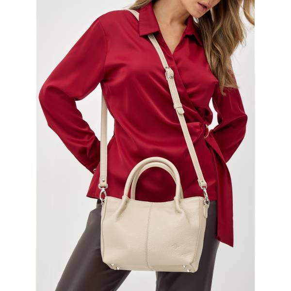 Женская сумка из натуральной кожи в бежевом цвете — утончённый аксессуар для повседневной элегантности. Мягкая кожа, плавные линии и лаконичный силуэт создают ощущение уюта и сдержанной роскоши. Удобные округлённые ручки позволяют комфортно носить сумку в руке, а съёмный ремень добавляет вариативность в образах. Аккуратная фурнитура подчёркивает продуманность дизайна и внимание к деталям. Сумка легко дополняет как городские, так и более женственные образы, оставаясь актуальным аксессуаром на каждый день.