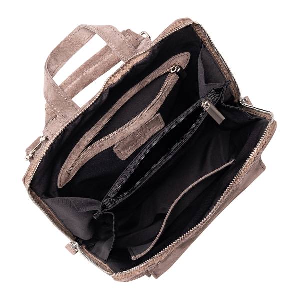 Женский рюкзак из мягкой замши в благородном сером оттенке — утончённый аксессуар для тех, кто ценит практичность без потери элегантности. Лаконичный силуэт и гладкие линии создают современный минималистичный образ, а бархатистая фактура замши добавляет тепла и тактильного комфорта. Удобная верхняя ручка и аккуратные лямки делают рюкзак универсальным для ежедневного использования, а продуманная форма помогает сохранить аккуратность и вместительность. Модель легко трансформируется из рюкзака в сумку — достаточно изменить положение лямок, чтобы адаптировать аксессуар под нужный формат и образ. Стильное решение для городского ритма, которое гармонично дополнит повседневные и более сдержанные образы.