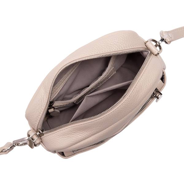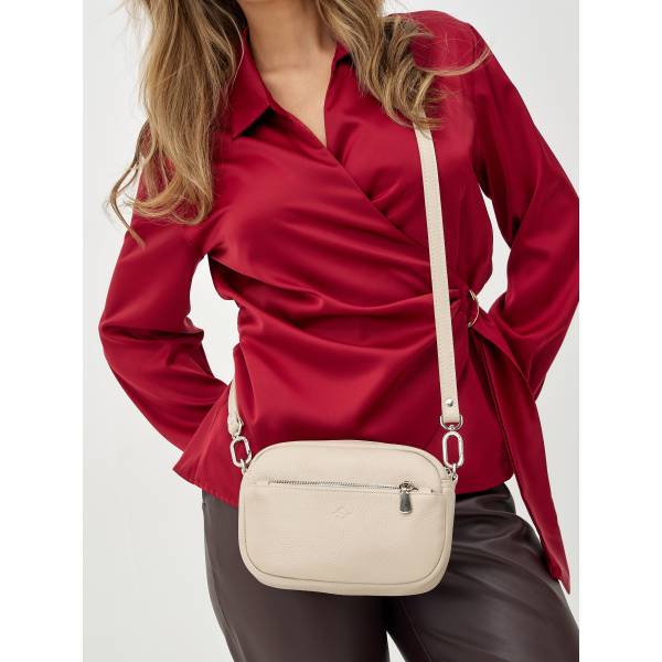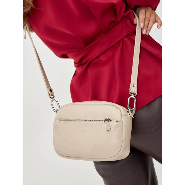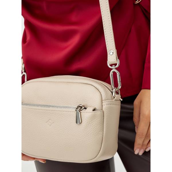 Женская сумка через плечо из мягкой натуральной кожи в бежевом цвете — стильный аксессуар для динамичного городского ритма. Лаконичная форма, округлённые линии и бархатистая фактура материала создают ощущение уюта, сдержанной роскоши и продуманного дизайна. Акцентная металлическая фурнитура добавляет образу выразительности, а удобный регулируемый ремень обеспечивает комфорт в течение всего дня. Сумка легко вписывается в повседневные и более собранные образы, подчёркивая индивидуальность и чувство стиля своей обладательницы.