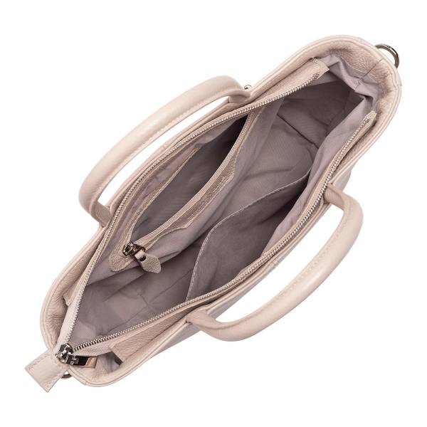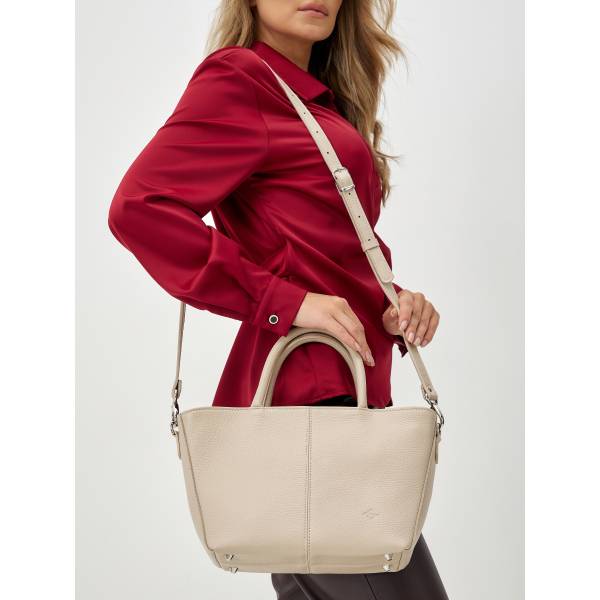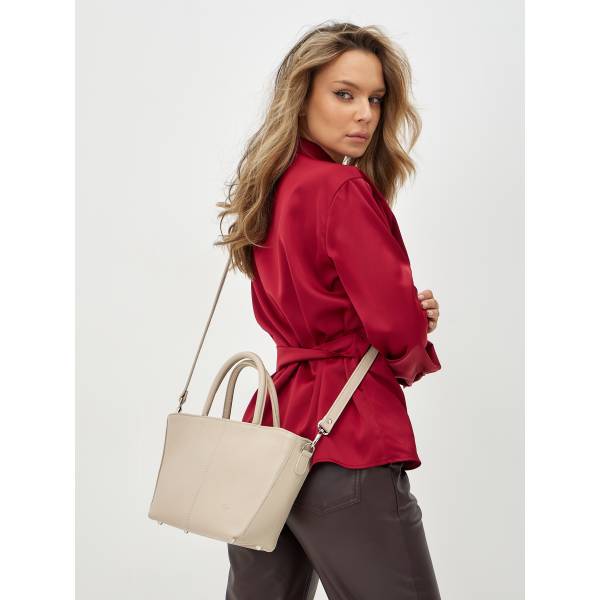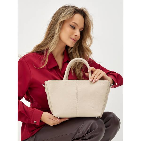 Женская сумка из натуральной кожи в бежевом цвете — гармоничное сочетание утончённости и практичности. Лаконичный трапециевидный силуэт, мягкая фактура и аккуратные швы создают ощущение продуманного дизайна и высокого качества исполнения. Удобные двойные ручки позволяют носить сумку в руке, а регулируемый плечевой ремень добавляет свободу в выборе образа. Металлическая фурнитура подчёркивает благородство материала и завершает цельный стиль аксессуара. Сумка станет элегантным акцентом в повседневных и деловых образах, сохраняя актуальность в любом сезоне.