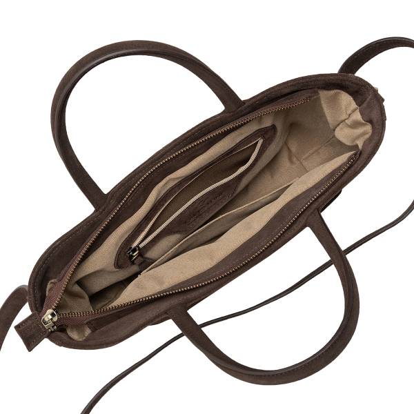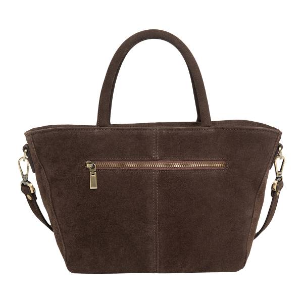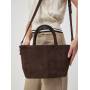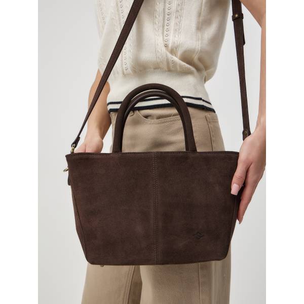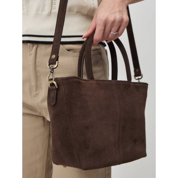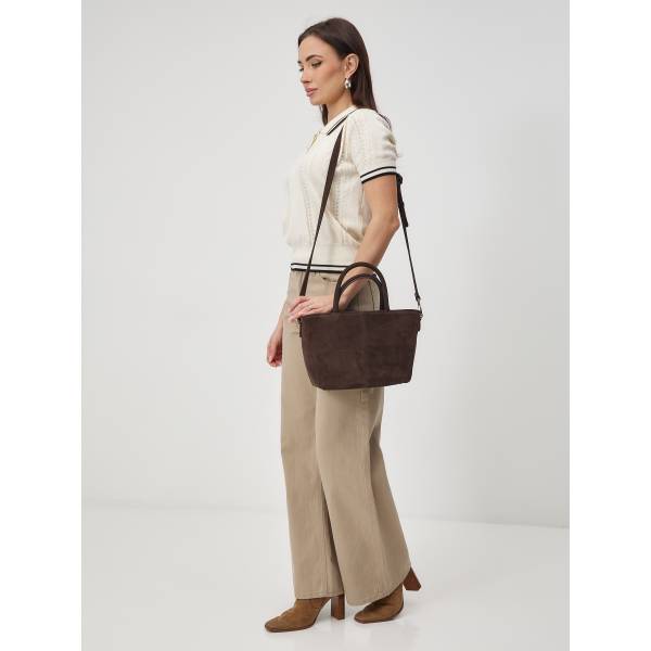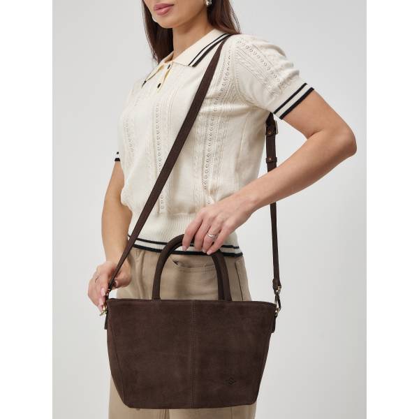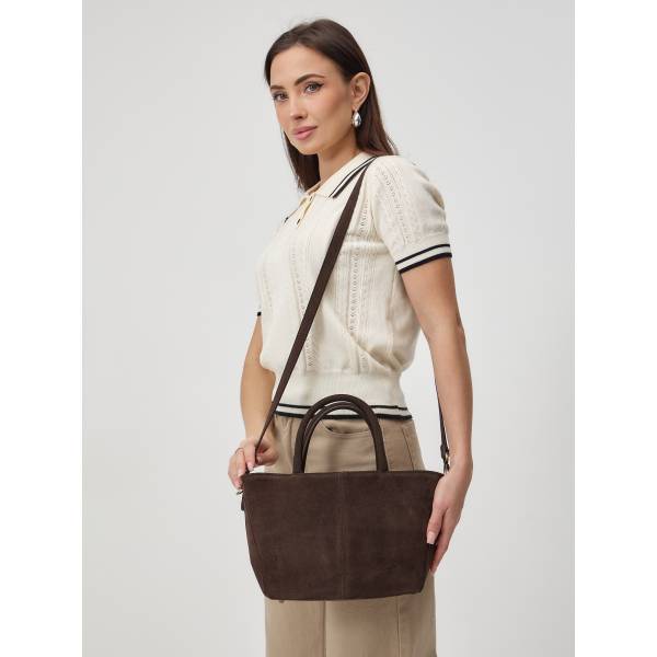 Женская сумка из натуральной замши в насыщенном шоколадном оттенке — гармоничное сочетание утончённости и практичности. Лаконичный трапециевидный силуэт, мягкая бархатистая фактура и аккуратные швы создают ощущение продуманного дизайна и высокого качества исполнения. Удобные двойные ручки позволяют носить сумку в руке, а регулируемый плечевой ремень добавляет свободу в выборе образа. Металлическая фурнитура подчёркивает благородство материала и завершает цельный стиль аксессуара. Сумка станет элегантным акцентом в повседневных и деловых образах, сохраняя актуальность в любом сезоне.